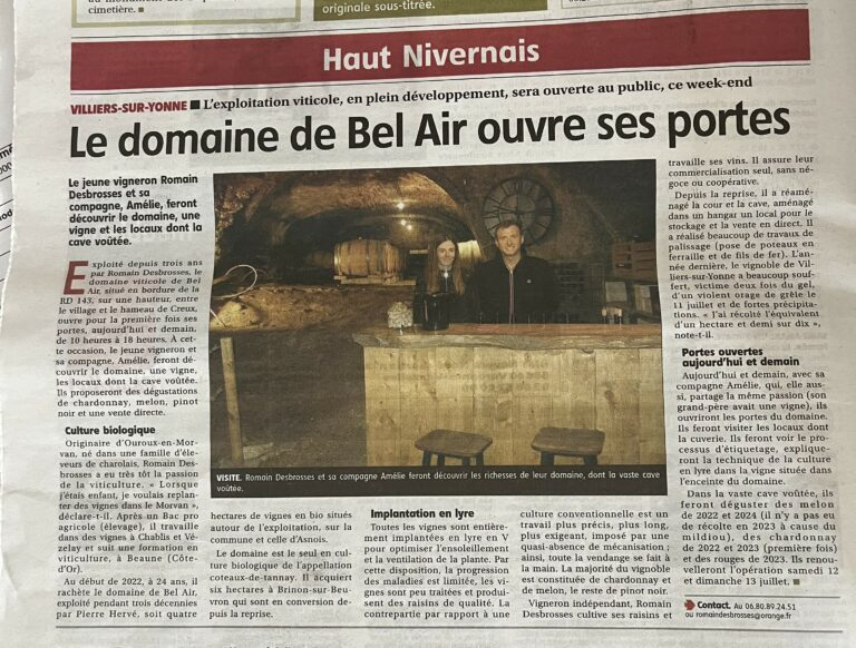 [Nouvelle Inscription] Aujourd’hui nous vous présentons Romain DESBROSSES de Villiers-sur-Yonne qui a repris le Domaine viticole de Bel Air en 2022. 🍾
